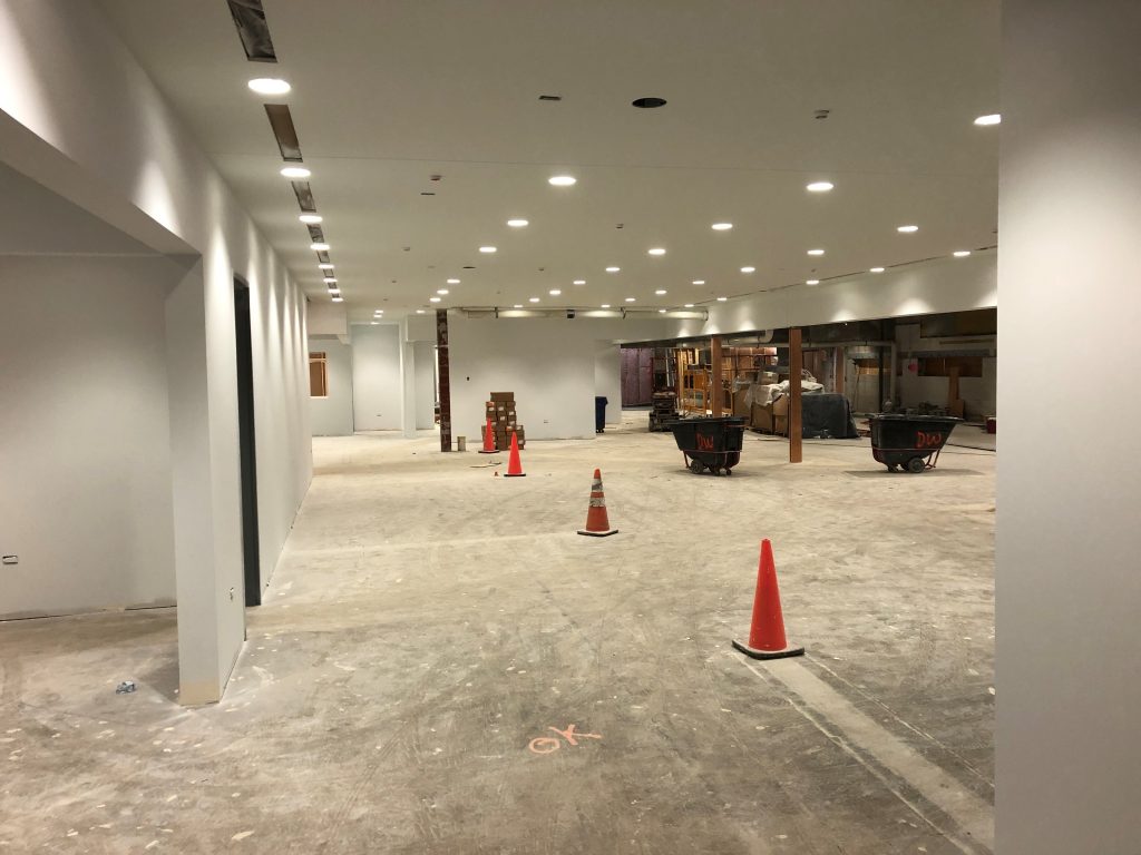 Our Service write up area had the fire sprinklers installed and inspected. The next step for this area is to have the Can light trims installed. The construction crew will also focus on painting the Pump Room walls.